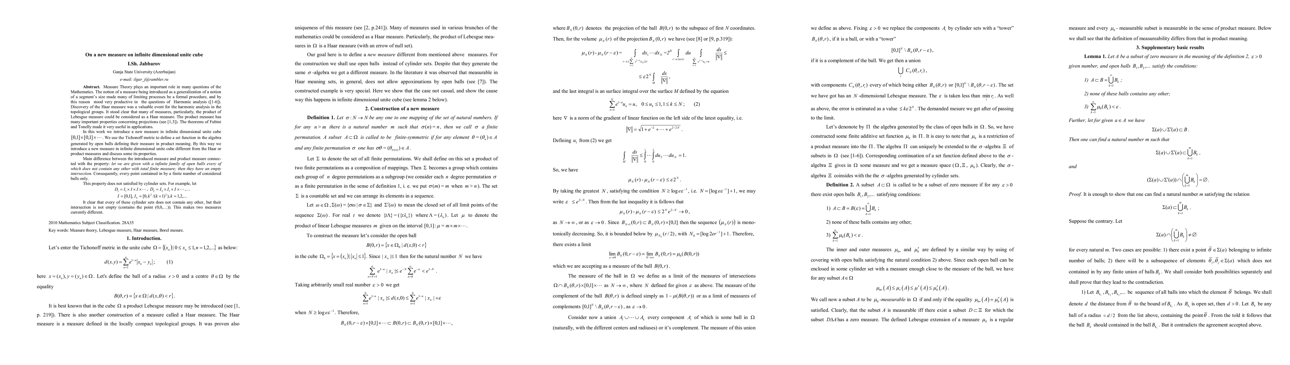 In the article a new measure in infinite dimensional unite cube different from the Haar or product measures is constructed. Some differences between introduced measure and the product measure are discussed.