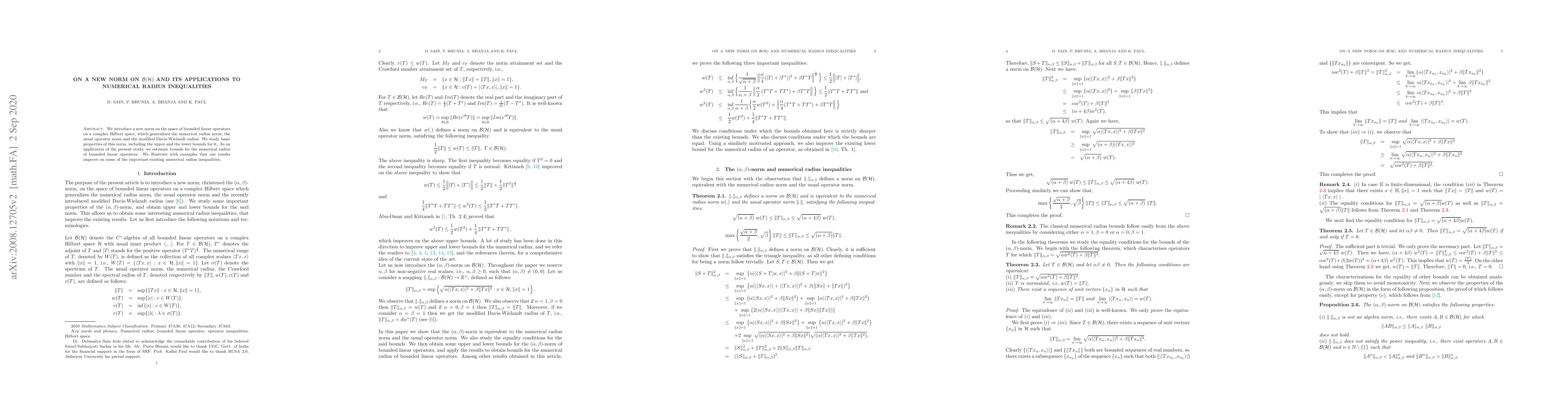 A new norm is introduced for bounded linear operators on a complex Hilbert space, generalizing existing norms and improving numerical radius inequalities with upper and lower bounds.