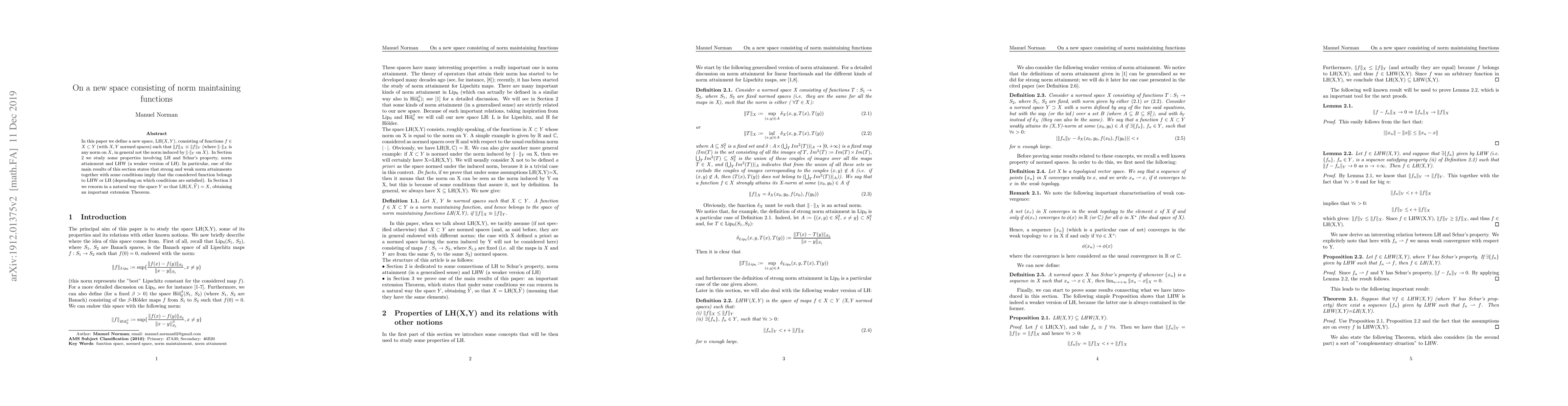 In this paper we define a new space, $LH(X,Y)$, consisting of functions $f\in X \subset Y$ (with $X,Y$ normed spaces) such that $\| f \|_X \equiv \| f \|_Y$ (where $\| \cdot \|_X$ is any norm on $X$, in general not the norm induced by $\| \cdot \|_Y$ on $X$). In Section 2 we study some properties involving $LH$ and Schur's property, norm attainment and $LHW$ (a weaker version of $LH$). In particular, one of the main results of this section states that strong and weak norm attainments together with some conditions imply that the considered function belongs to $LHW$ or $LH$ (depending on which conditions are satisfied). In Section 3 we renorm in a natural way the space $Y$ so that $LH(X,\widetilde{Y})=X$, obtaining an important extension Theorem.