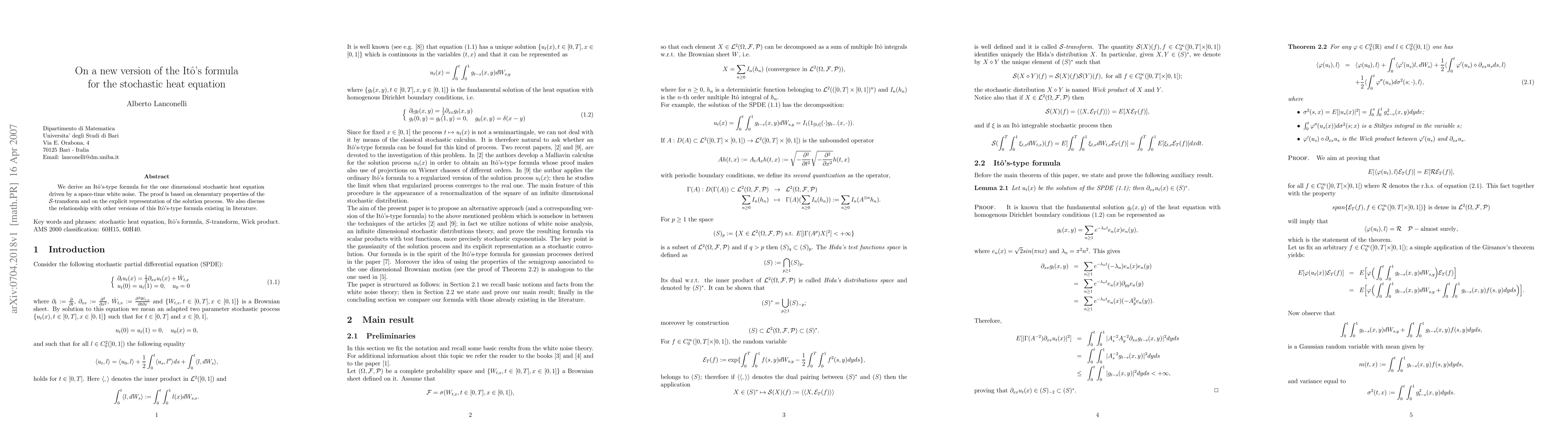 This paper derives a new Itô's-type formula for the one-dimensional stochastic heat equation driven by space-time white noise, utilizing the $\mathcal{S}$-transform and an explicit solution representation. It also examines the connections to other existing versions of the Itô's formula in the literature.