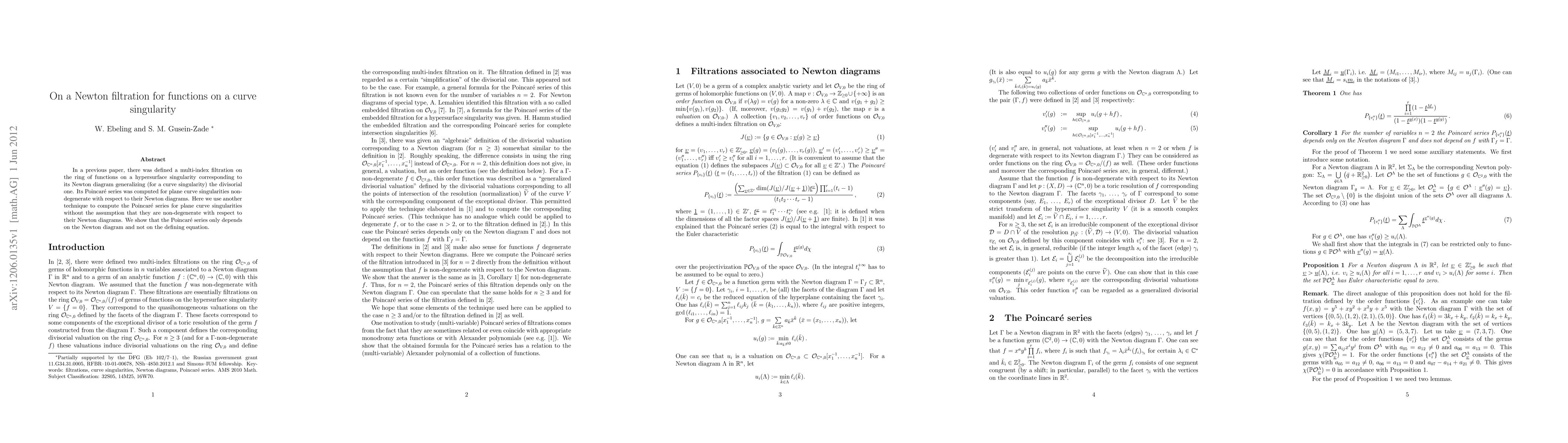 This paper develops a Newton filtration for functions on a curve singularity and computes the Poincaré series using a new technique, demonstrating that the series depends solely on the Newton diagram rather than the specific defining equation, even for degenerate cases.