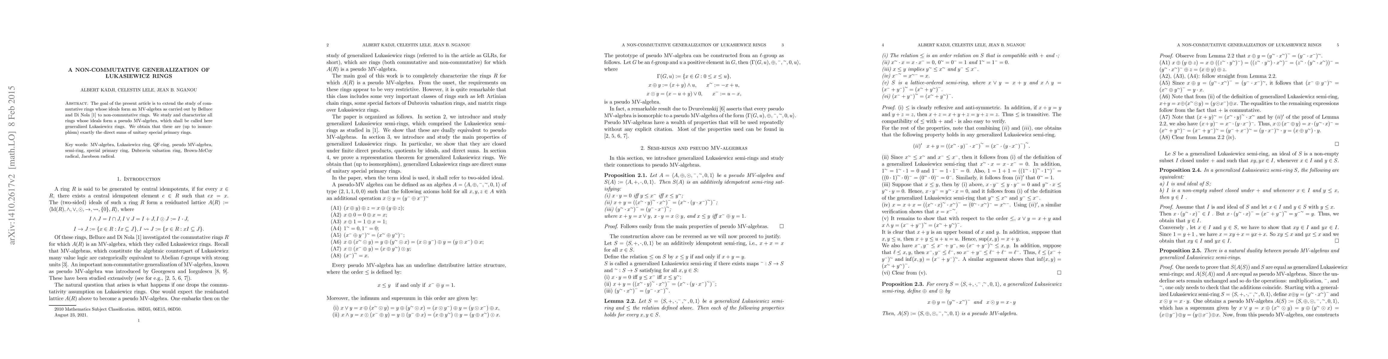 This paper extends the study of commutative Lukasiewicz rings to non-commutative settings, characterizing rings whose ideals form a pseudo MV-algebra, termed generalized Lukasiewicz rings, and shows they are isomorphic to direct sums of unitary special primary rings.