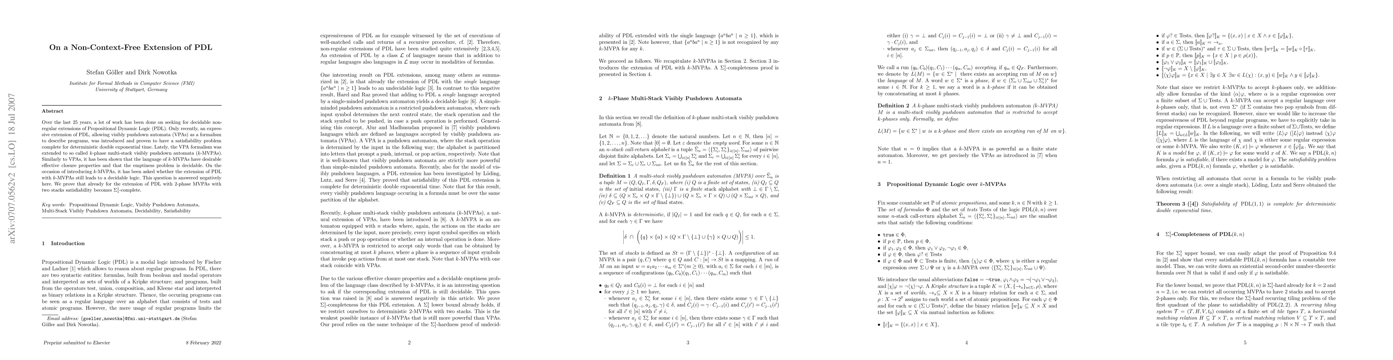 Researchers found that adding 2-phase multi-stack visibly pushdown automata (k-MVPAs) to Propositional Dynamic Logic (PDL) leads to a logic with an unsolvable satisfiability problem in deterministic double exponential time.