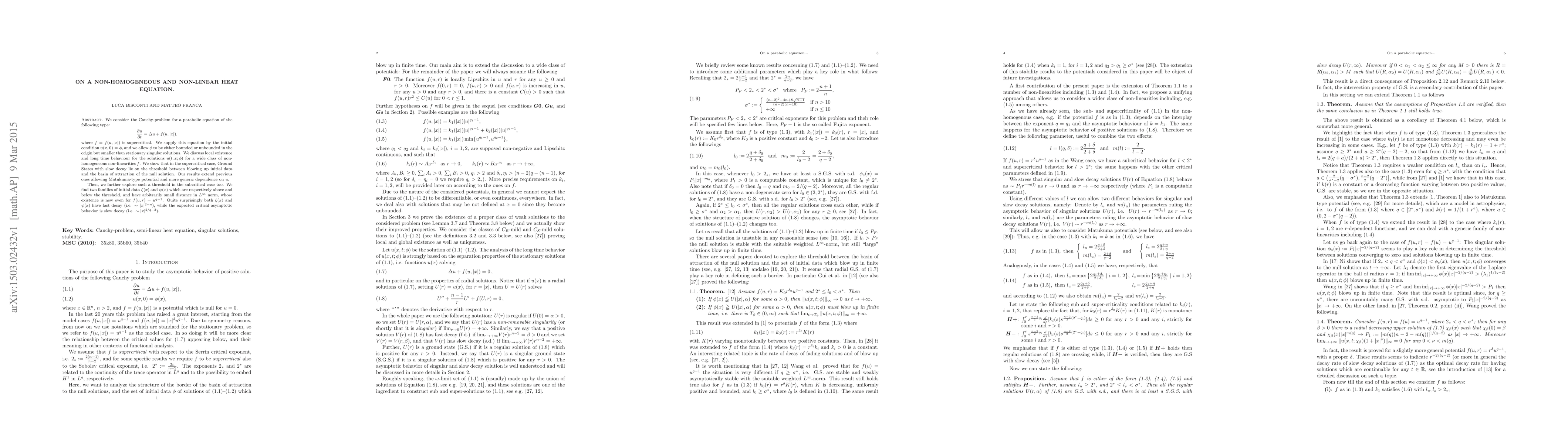This paper studies the behavior of solutions to a non-homogeneous and non-linear heat equation with supercritical non-linearity, exploring its existence and long-term behavior for various initial conditions.