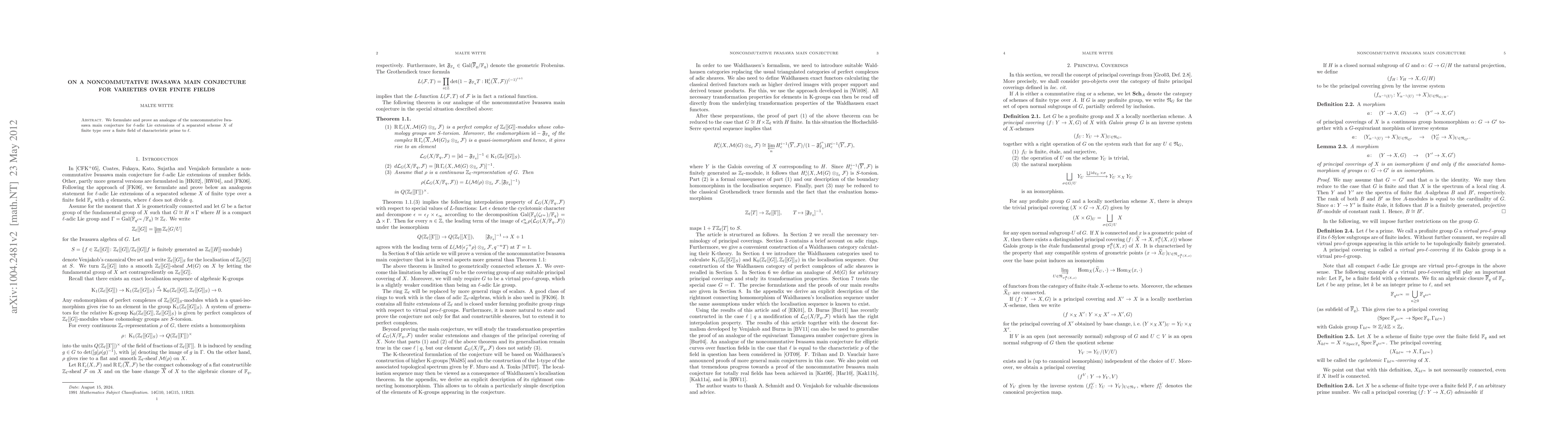 The paper formulates and proves a noncommutative Iwasawa main conjecture for l-adic Lie extensions of varieties over finite fields, providing evidence for the conjecture proposed for number fields in 2005. The results extend the conjecture to schemes of finite type over a finite field.