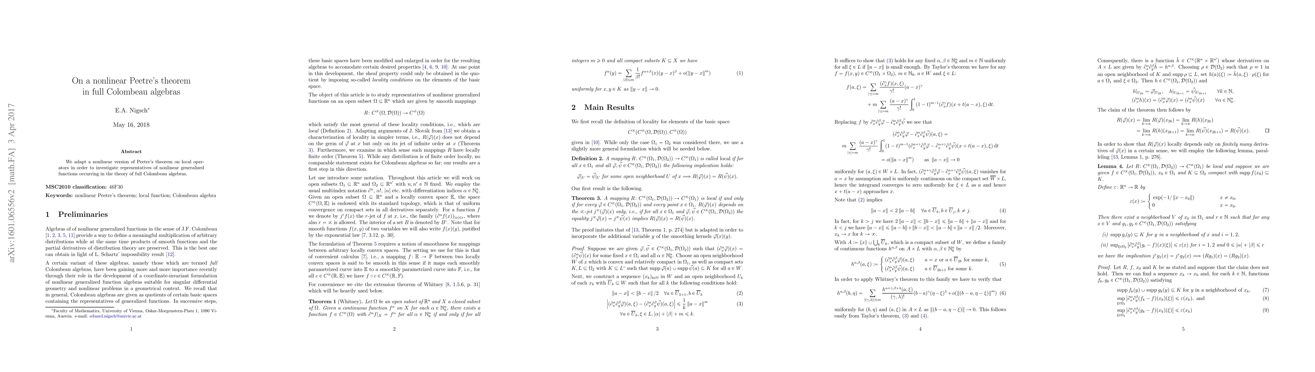 We adapt a nonlinear version of Peetre's theorem on local operators in order to investigate representatives of nonlinear generalized functions occurring in the theory of full Colombeau algebras.