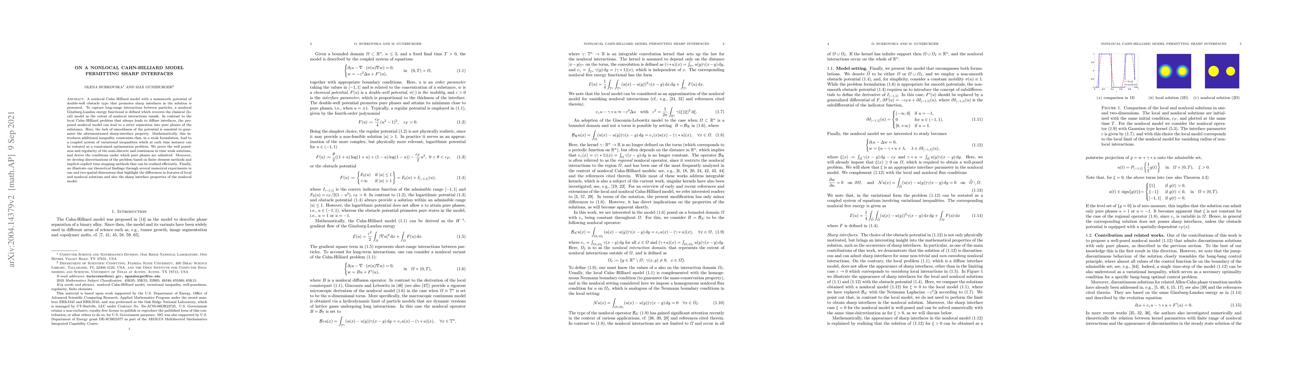 A nonlocal Cahn-Hilliard model is presented that allows for sharp interfaces in solutions, unlike classical models which always lead to diffuse interfaces, and can capture long-range interactions between particles.