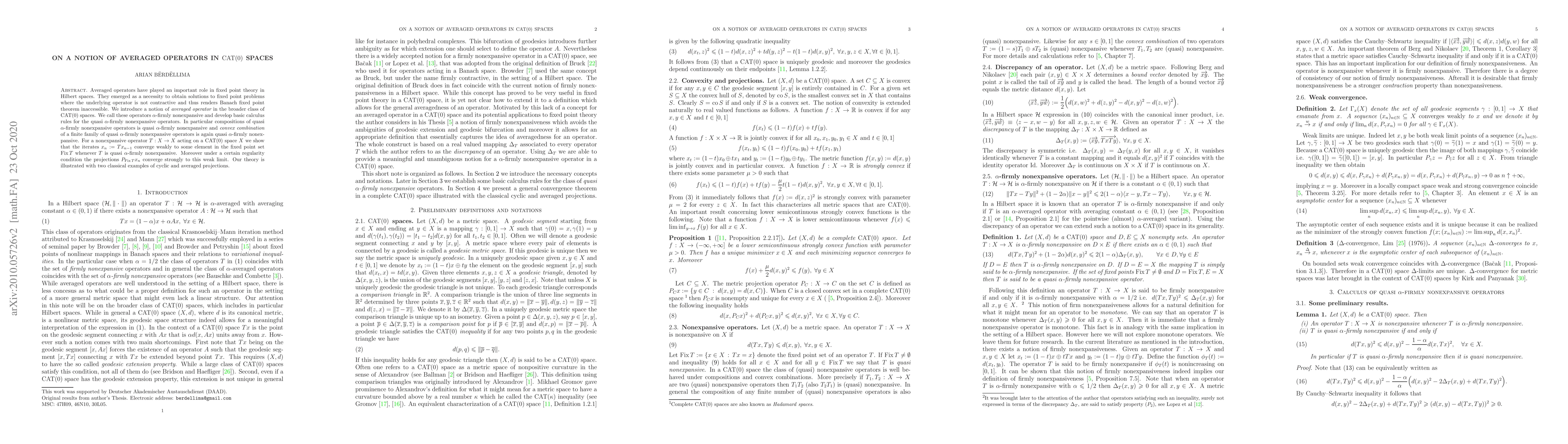 Averaged operators have played an important role in fixed point theory in Hilbert spaces. They emerged as a necessity to obtain solutions to fixed point problems where the underlying operator is not contractive and thus renders Banach fixed point theorem inaccessible. We introduce a notion of averaged operator in the broader class of $\text{CAT}(0)$ spaces. We call these operators $\alpha$-firmly nonexpansive and develop basic calculus rules for the quasi $\alpha$-firmly nonexpansive operators. In particular compositions of quasi $\alpha$-firmly nonexpansive operators is quasi $\alpha$-firmly nonexpansive and convex combination of a finite family of quasi $\alpha$-firmly nonexpansive operators is again quasi $\alpha$-firmly nonexpansive. For a nonexpansive operator $T:X\to X$ acting on a $\text{CAT}(0)$ space $X$ we show that the iterates $x_n:=Tx_{n-1}$ converge weakly to some element in the fixed point set $\text{Fix} T$ whenever $T$ is quasi $\alpha$-firmly nonexpansive. Moreover under a certain regularity condition the projections $P_{\text{Fix} T}x_n$ converge strongly to this weak limit. Our theory is illustrated with two classical examples of cyclic and averaged projections.
