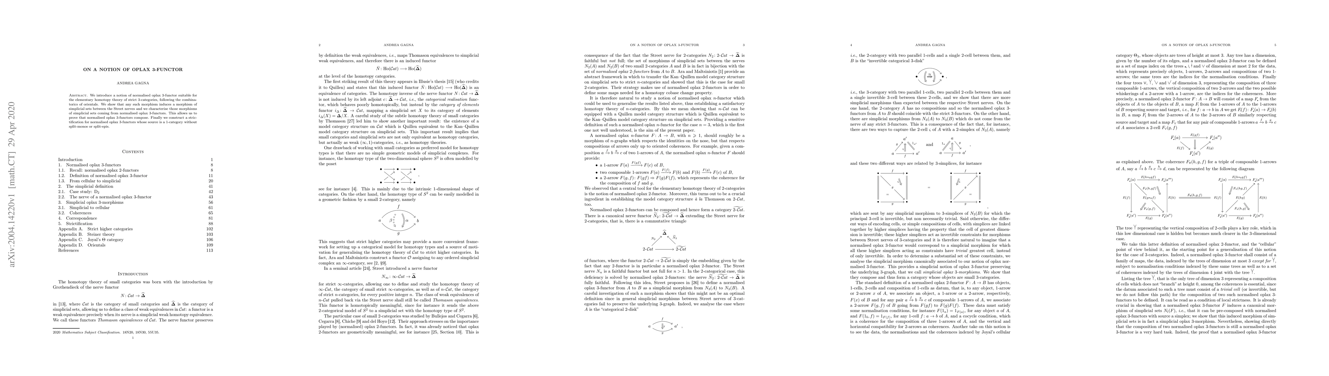 We introduce a notion of normalised oplax $3$-functor suitable for the elementary homotopy theory of strict $3$-categories, following the combinatorics of orientals. We show that any such morphism induces a morphism of simplicial sets between the Street nerves and we characterise those morphisms of simplicial sets coming from normalised oplax $3$-functors. This allows us to prove that normalised oplax $3$-functors compose. Finally we construct a strictification for normalised oplax $3$-functors whose source is a $1$-category without split-monos or split-epis.
