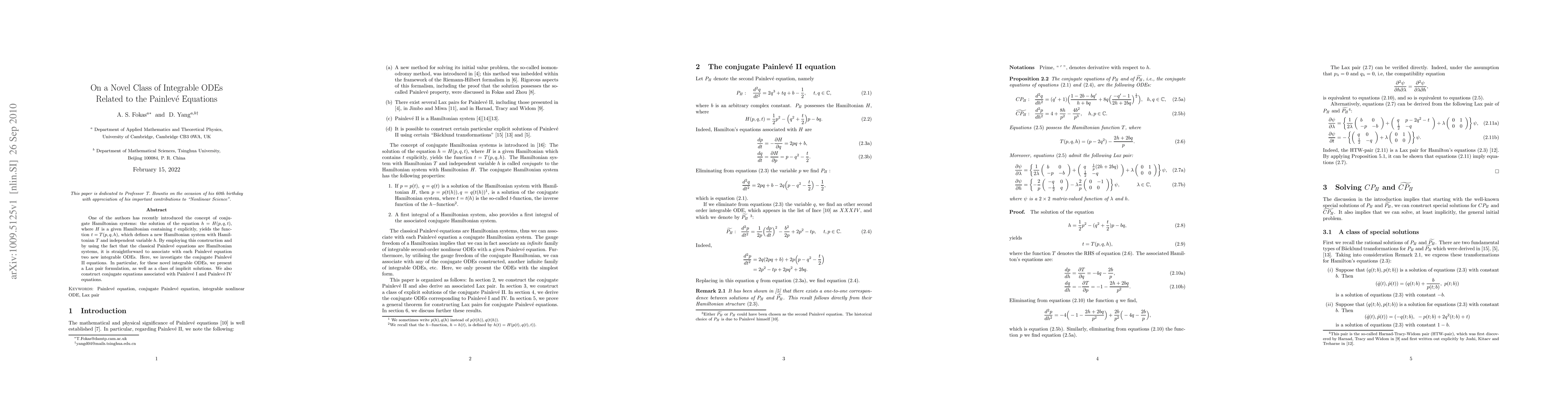 This paper introduces a novel class of integrable ordinary differential equations (ODEs) derived from the conjugate Hamiltonian systems related to the classical Painlevé equations. It presents Lax pair formulations and implicit solutions for the conjugate Painlevé II equations, and extends the construction to Painlevé I and IV equations.