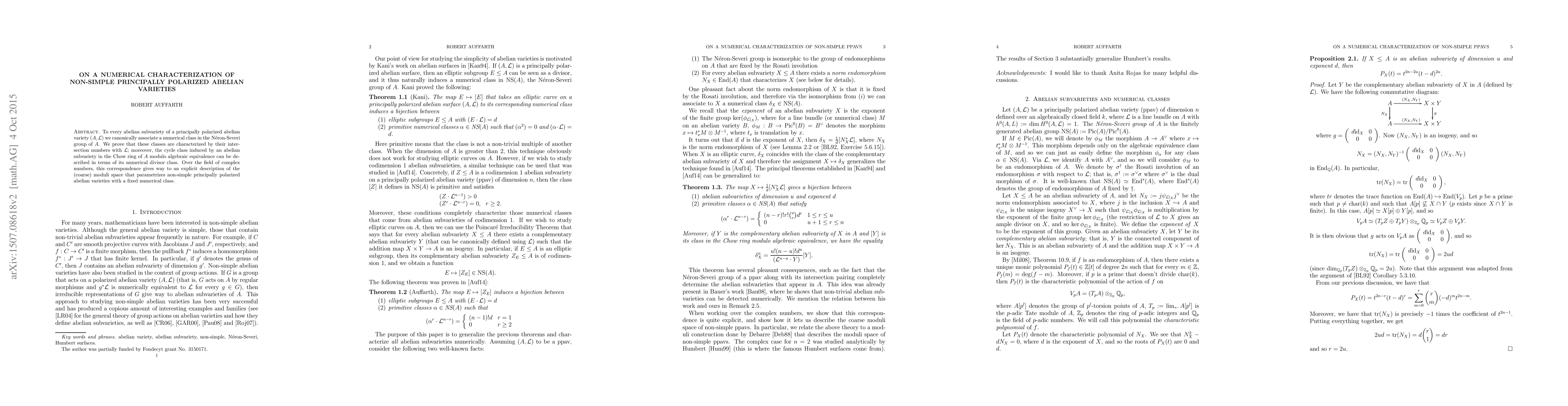 This paper characterizes abelian subvarieties of a principally polarized abelian variety by their intersection numbers with a canonical line bundle, showing that these intersection numbers determine the numerical class in the N\'eron-Severi group. It also describes the cycle class in the Chow ring over the complex numbers in terms of the numerical divisor class, leading to an explicit description of the moduli space for non-simple principally polarized abelian varieties.