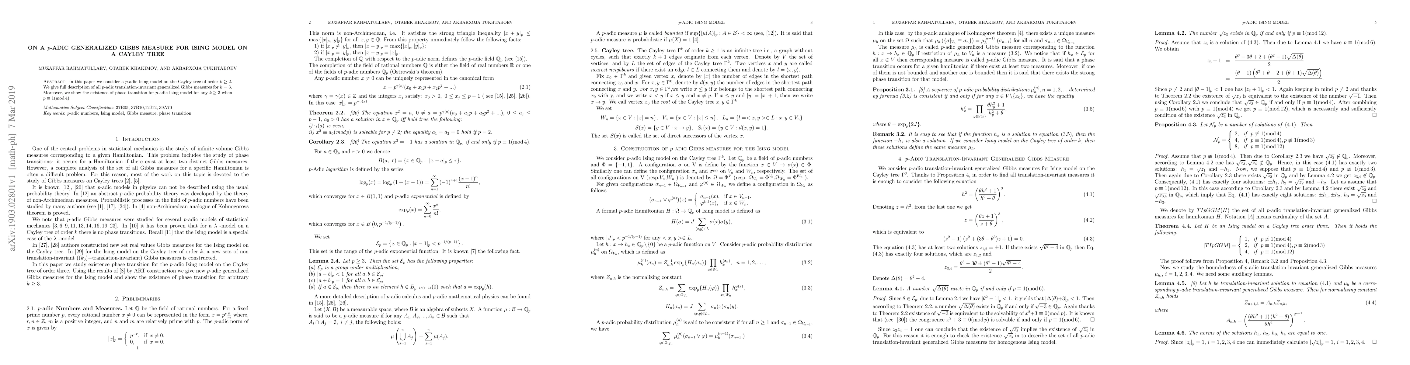 This paper explores a $p$-adic Ising model on a Cayley tree, detailing $p$-adic translation-invariant generalized Gibbs measures for $k=3$ and demonstrating phase transition existence for $k\geq3$ when $p\equiv1(\operatorname{mod }4)$.