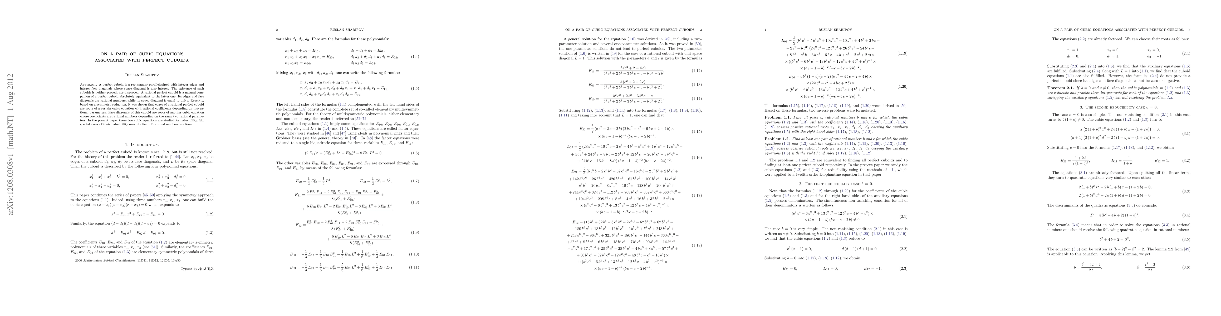 This paper investigates two cubic equations related to rational perfect cuboids, where the cubic equations determine the edges and face diagonals respectively. The study finds six special cases where these cubic equations can be reduced over the rational numbers.