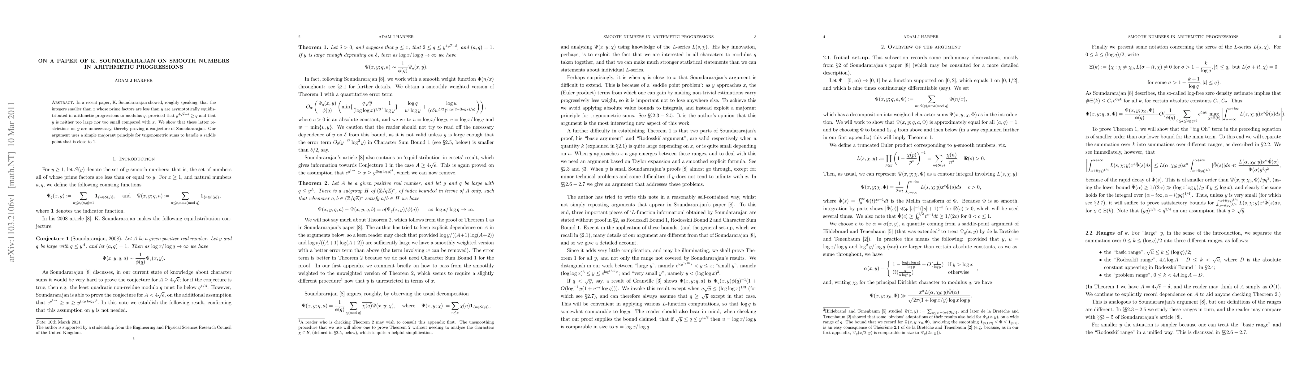 In a recent paper, K. Soundararajan showed, roughly speaking, that the integers smaller than x whose prime factors are less than y are asymptotically equidistributed in arithmetic progressions to modulus q, provided that y^{4\sqrt{e}-\delta} \geq q and that y is neither too large nor too small compared with x. We show that these latter restrictions on y are unnecessary, thereby proving a conjecture of Soundararajan. Our argument uses a simple majorant principle for trigonometric sums to handle a saddle point that is close to 1.