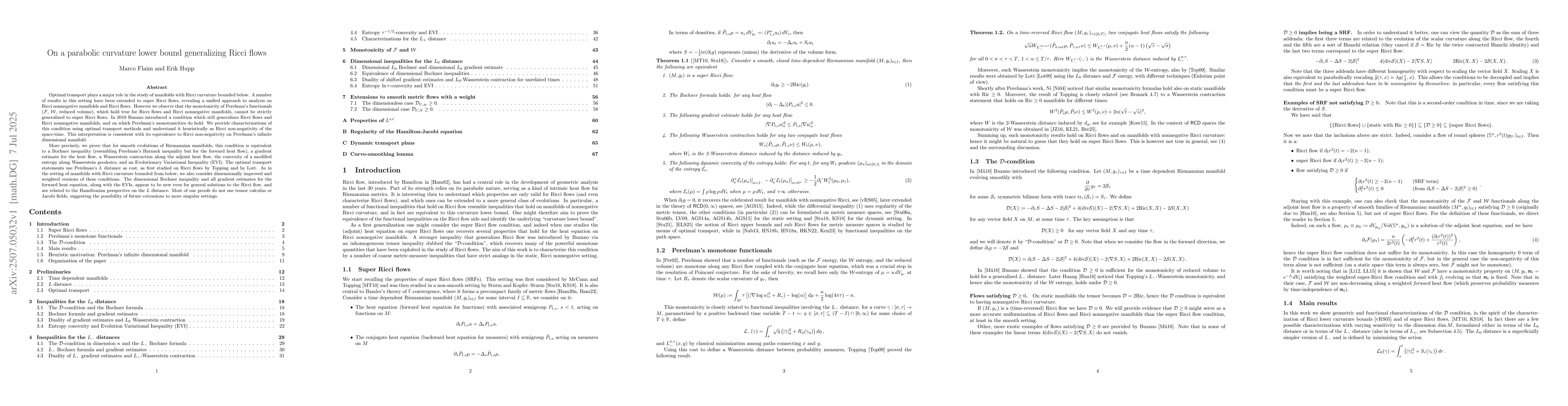 The research employs a combination of optimal transport theory and parabolic partial differential equations to analyze curvature lower bounds in manifolds, extending previous findings on Ricci flows and super Ricci flows.