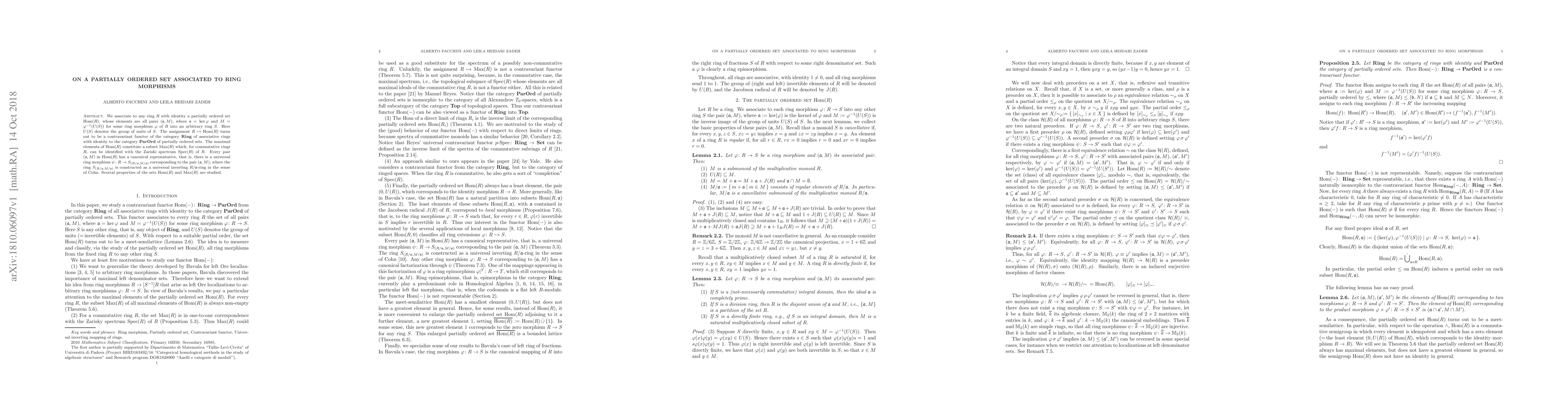 We associate to any ring $R$ with identity a partially ordered set Hom$(R)$, whose elements are all pairs $(\mathfrak a,M)$, where $\mathfrak a=\ker\varphi$ and $M=\varphi^{-1}(U(S))$ for some ring morphism $\varphi$ of $R$ into an arbitrary ring $S$. Here $U(S)$ denotes the group of units of $S$. The assignment $R\mapsto{}$Hom$(R)$ turns out to be a contravariant functor of the category Ring of associative rings with identity to the category ParOrd of partially ordered sets. The maximal elements of Hom$(R)$ constitute a subset Max$(R)$ which, for commutative rings $R$, can be identified with the Zariski spectrum Spec$(R)$ of $R$. Every pair $(\mathfrak a,M)$ in Hom$(R)$ has a canonical representative, that is, there is a universal ring morphism $\psi\colon R\to S_{(R/\mathfrak a,M/\mathfrak a)} $ corresponding to the pair $(\mathfrak a,M)$, where the ring $S_{(R/\mathfrak a,M/\mathfrak a)} $ is constructed as a universal inverting $R/\mathfrak a$-ring in the sense of Cohn. Several properties of the sets Hom$(R)$ and Max$(R)$ are studied.