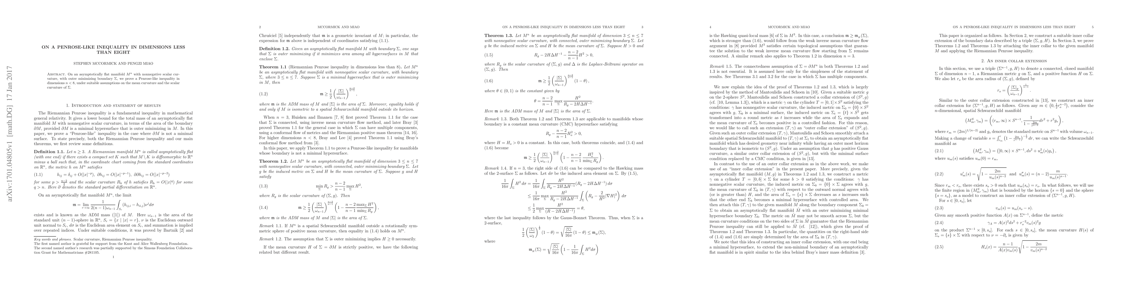 Researchers prove a Penrose-like inequality in dimensions less than 8 for asymptotically flat manifolds with nonnegative scalar curvature on their boundaries.