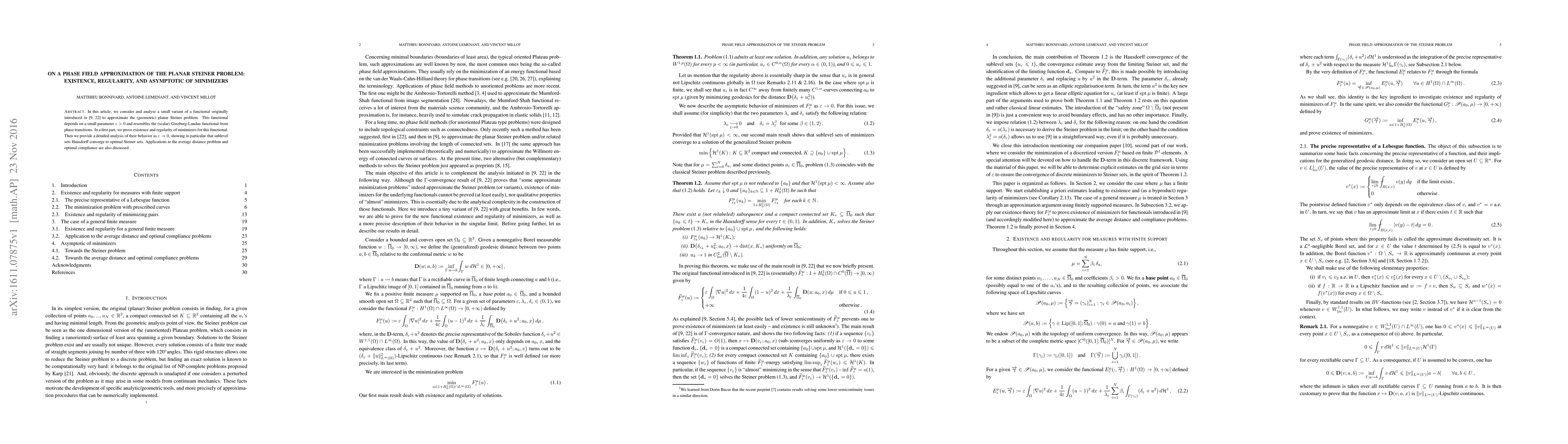 In this article, we consider and analyse a small variant of a functional originally introduced in \cite{BLS,LS} to approximate the (geometric) planar Steiner problem. This functional depends on a small parameter $\varepsilon>0$ and resembles the (scalar) Ginzburg-Landau functional from phase transitions. In a first part, we prove existence and regularity of minimizers for this functional. Then we provide a detailed analysis of their behavior as $\varepsilon\to0$, showing in particular that sublevel sets Hausdorff converge to optimal Steiner sets. Applications to the average distance problem and optimal compliance are also discussed.