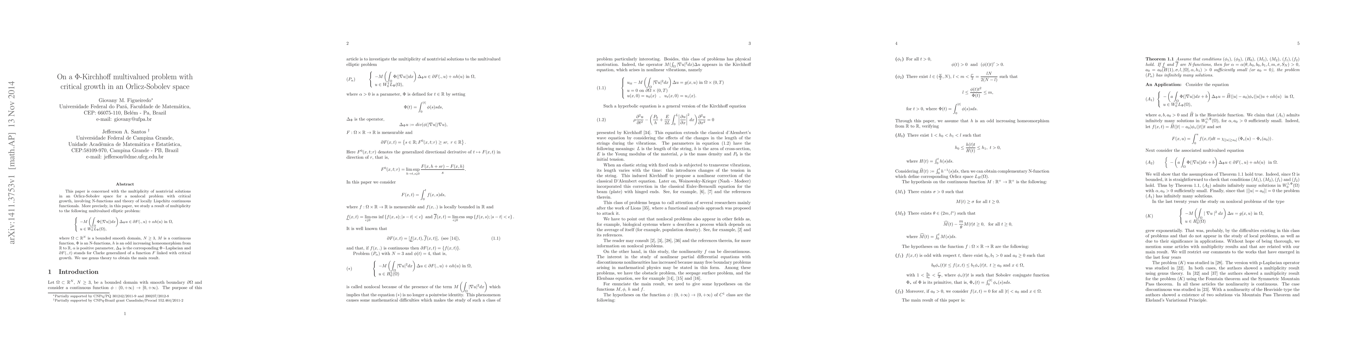 Summary: The paper investigates the existence of multiple nontrivial solutions for a nonlocal problem with critical growth in an Orlicz-Sobolev space, utilizing N-functions and locally Lipschitz continuous functionals. The focus is on the theoretical framework and analytical techniques to address the problem's complexity.