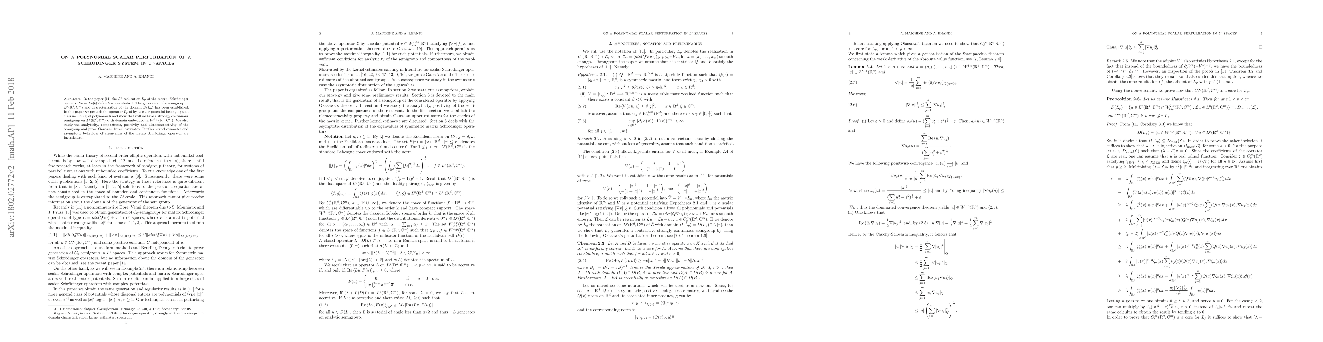 In the paper \cite{KLMR} the $L^p$-realization $L_p$ of the matrix Schr\"odinger operator $\mathcal{L}u=div(Q\nabla u)+Vu$ was studied. The generation of a semigroup in $L^p(\R^d,\C^m)$ and characterization of the domain $D(L_p)$ has been established. In this paper we perturb the operator $L_p$ of by a scalar potential belonging to a class including all polynomials and show that still we have a strongly continuous semigroup on $L^p(\R^d,\C^m)$ with domain embedded in $W^{2,p}(\R^d,\C^m)$. We also study the analyticity, compactness, positivity and ultracontractivity of the semigroup and prove Gaussian kernel estimates. Further kernel estimates and asymptotic behaviour of eigenvalues of the matrix Schr\"odinger operator are investigated.