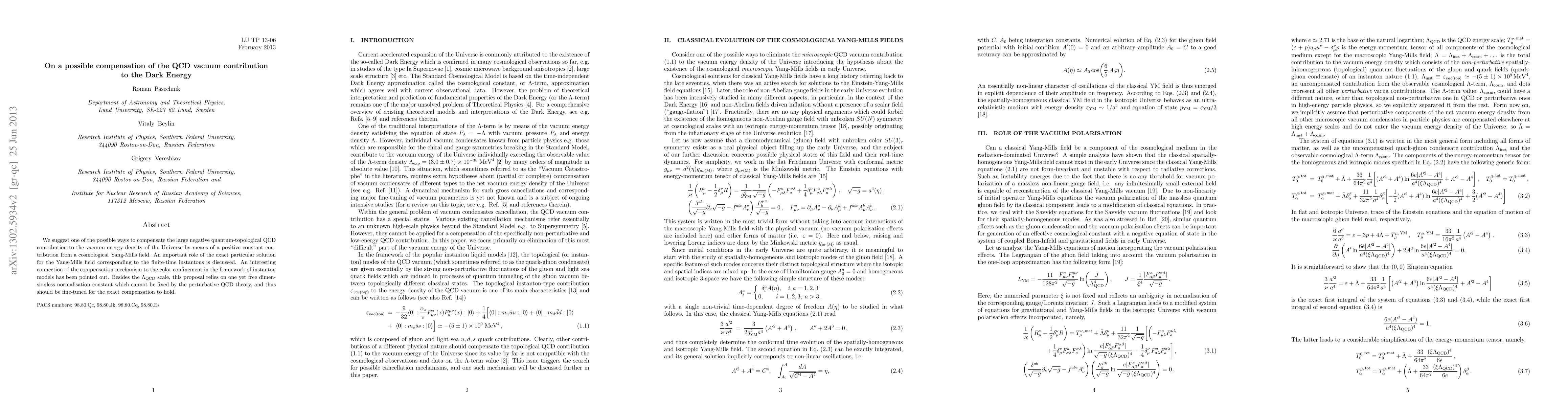 Researchers propose a mechanism to compensate for the large negative quantum contribution to dark energy by introducing a positive constant from a cosmological Yang-Mills field, using an unfixable normalization constant.