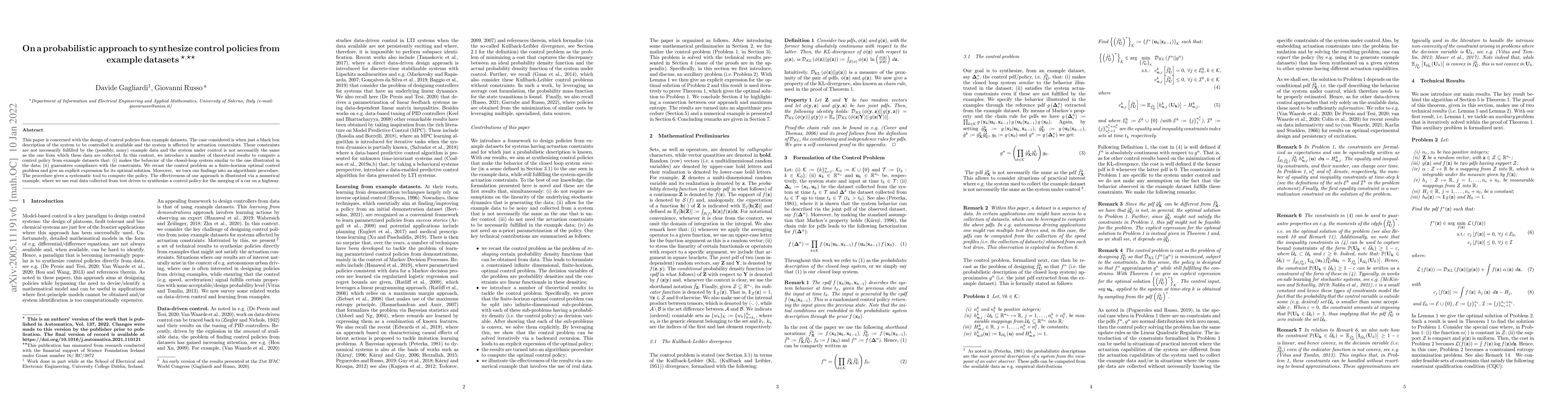 This paper introduces a method to create control policies from example datasets that adhere to actuation constraints and mimic system behavior, illustrating its effectiveness with real-world data.