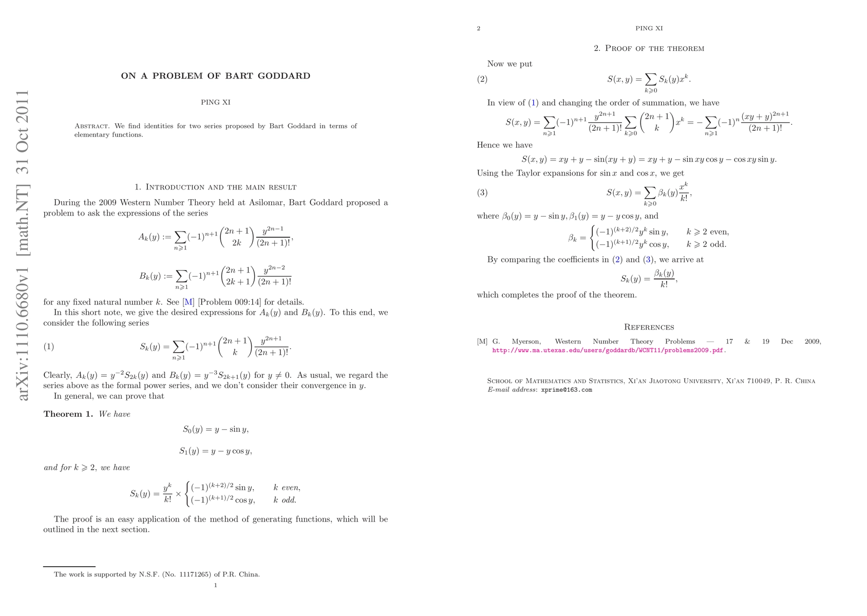 We find identities for two series proposed by Bart Goddard in terms of elementary functions.