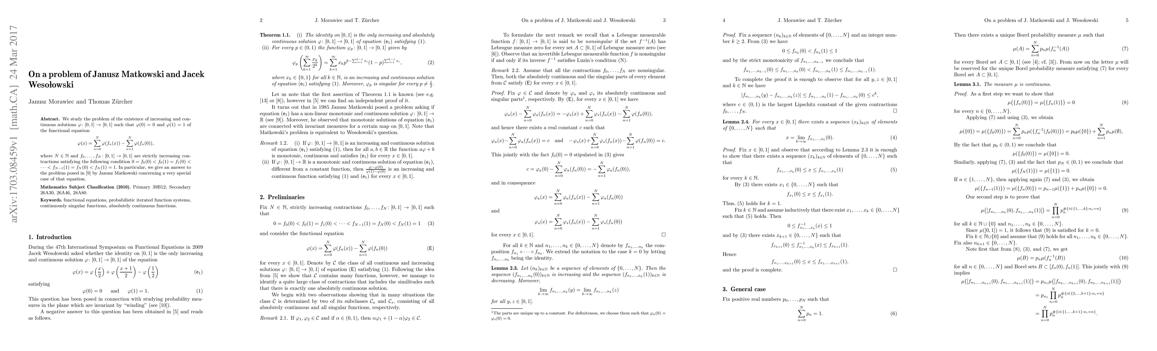 Researchers investigate a functional equation involving strictly increasing contractions, aiming to find solutions that map 0 to 0 and 1 to 1, with key findings on the existence of such solutions.