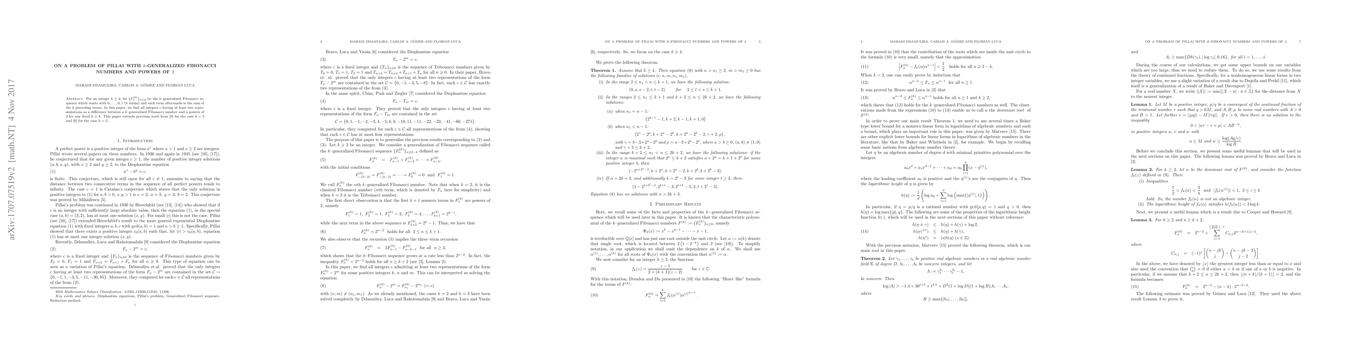This paper investigates integers $c$ that can be expressed as the difference between a $k$-generalized Fibonacci number and a power of 2 for $k \geq 4$. It extends previous findings for $k=2$ and $k=3$ and identifies all such integers $c$ with at least two representations.
