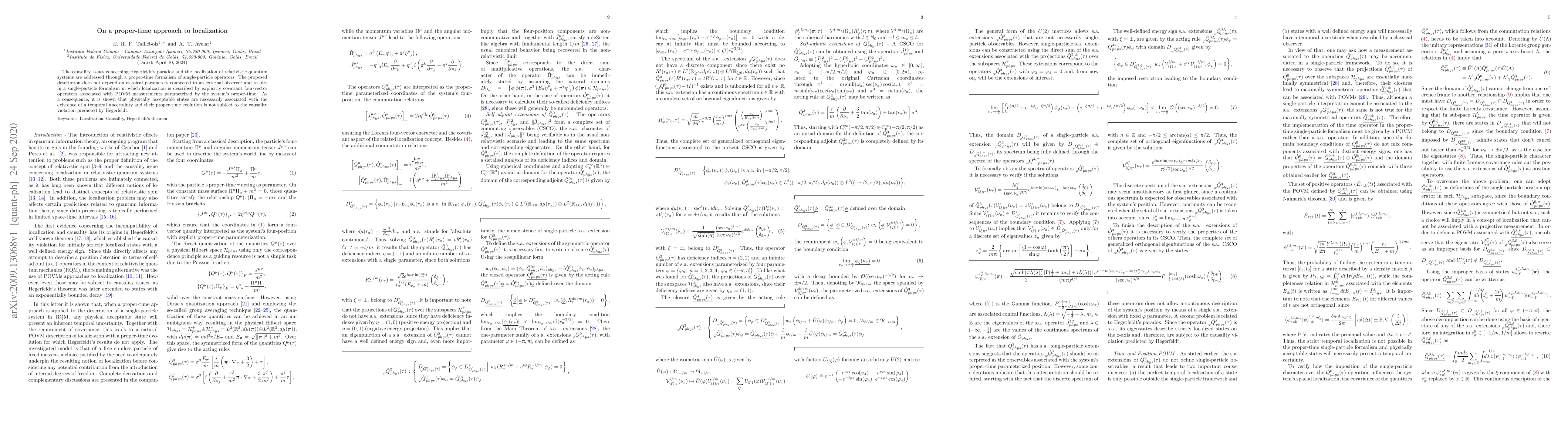The paper proposes a proper-time formalism to resolve causality issues in relativistic quantum localization, eliminating classical observer-dependent parameters. It demonstrates that temporal uncertainty is inherent in acceptable states, preventing Hegerfeldt's predicted causality violation.