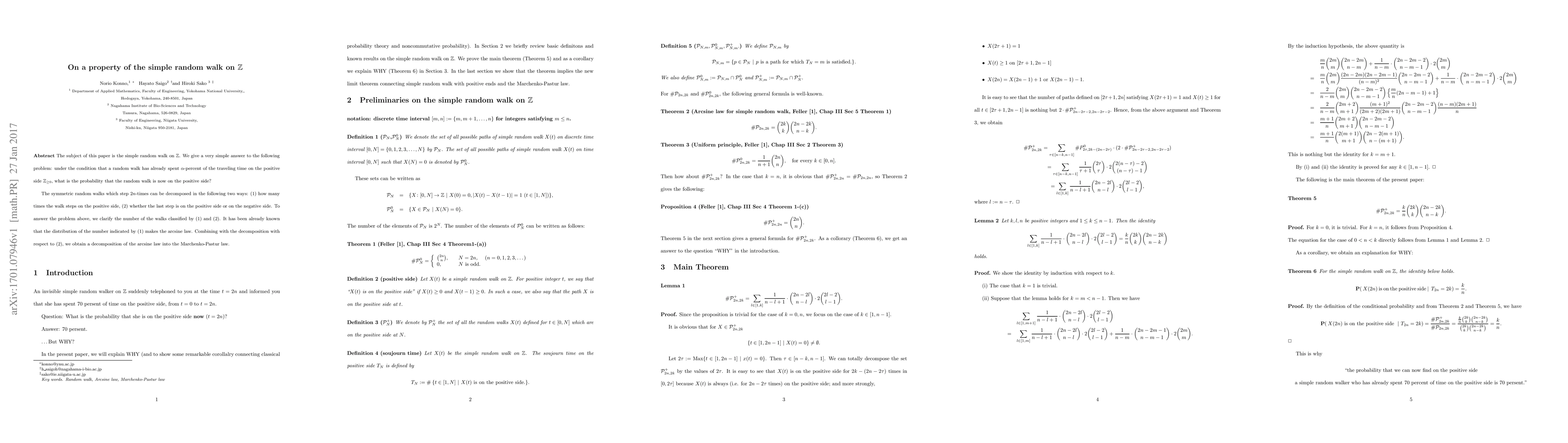This paper investigates the simple random walk on $\mathbb{Z}$ and determines the probability that the walk is on the positive side given it has spent $\alpha$-percent of its time there. It decomposes the random walk into two parts and uses the arcsine law to derive a result linked to the Marchenko-Pastur law.