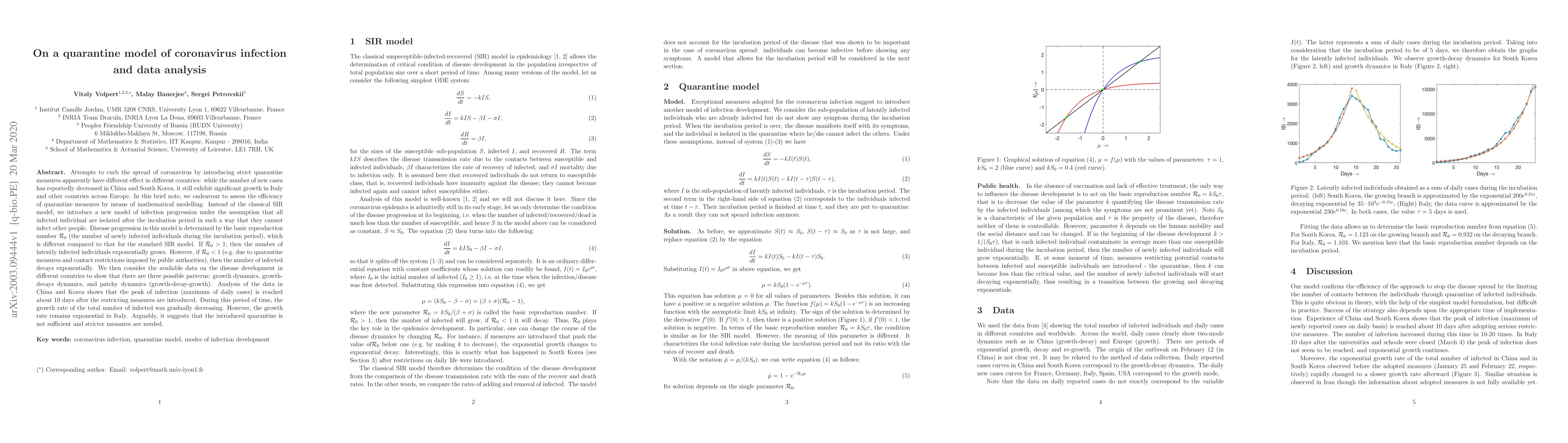 A new model of coronavirus infection progression suggests that quarantine measures can slow but not stop the spread of the disease, highlighting the need for stricter measures in countries where growth rates remain exponential.