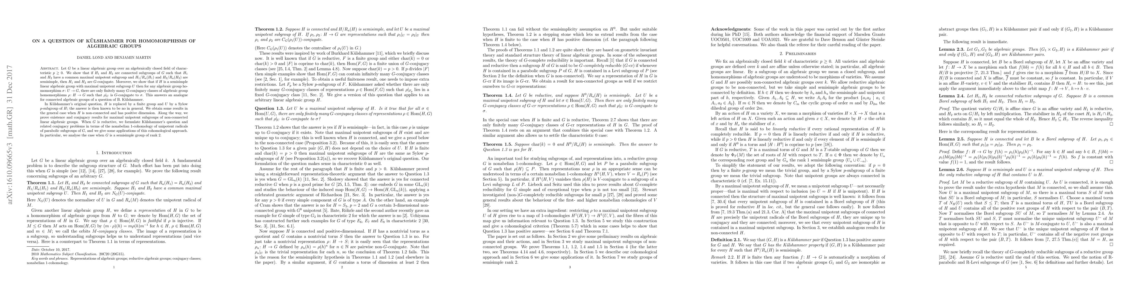 This paper addresses K\"ulshammer's question on homomorphisms of algebraic groups, proving that connected subgroups of a linear algebraic group sharing a common maximal unipotent subgroup and having semisimple quotients are $G$-conjugate. It also shows that for a semisimple group $H$ with a maximal unipotent subgroup $U$, there are only finitely many $G$-conjugacy classes of homomorphisms from $H$ to $G$ when $U$ is mapped to $G$.