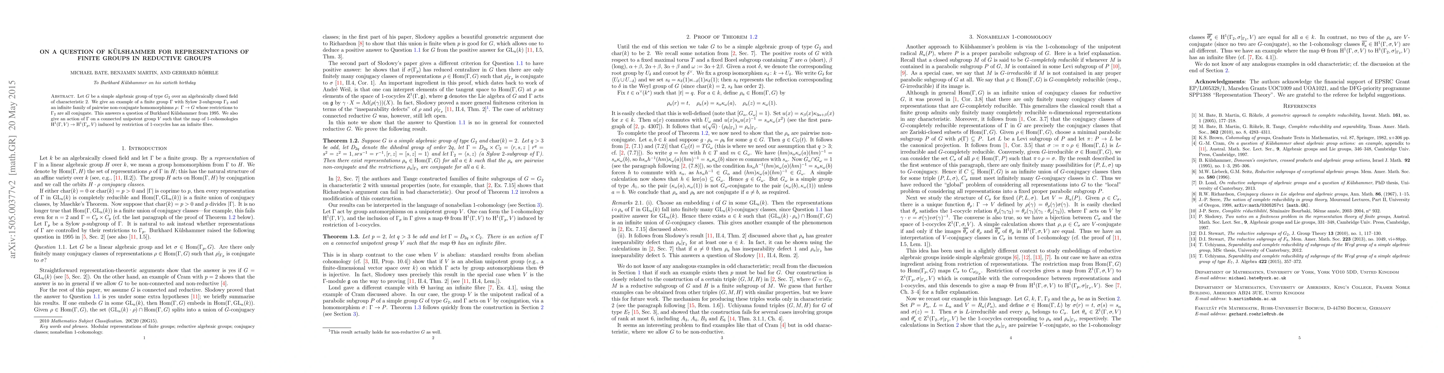 This paper provides an example of a finite group $\Gamma$ with a specific Sylow $2$-subgroup $\Gamma_2$ and an infinite family of non-conjugate homomorphisms from $\Gamma$ to a simple algebraic group $G$ of type $G_2$ in characteristic $2$, all of which restrict to conjugate homomorphisms on $\Gamma_2$. This resolves a question posed by Burkhard Külhammer in 1995.