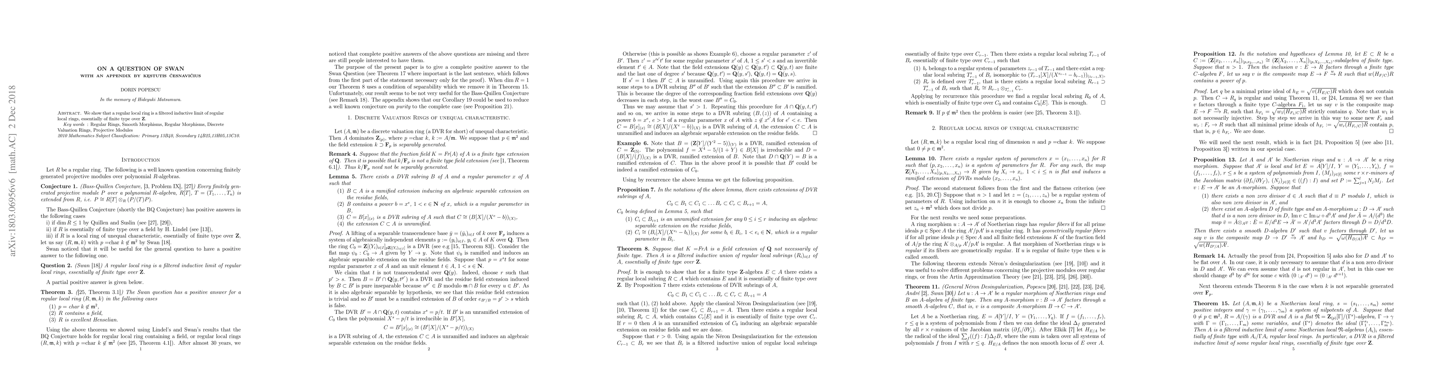 We show that a regular local ring is a filtered inductive limit of regular local rings, essentially of finite type over $\bf Z$. As an application the cohomological purity conjecture is reduced to the complete case.
