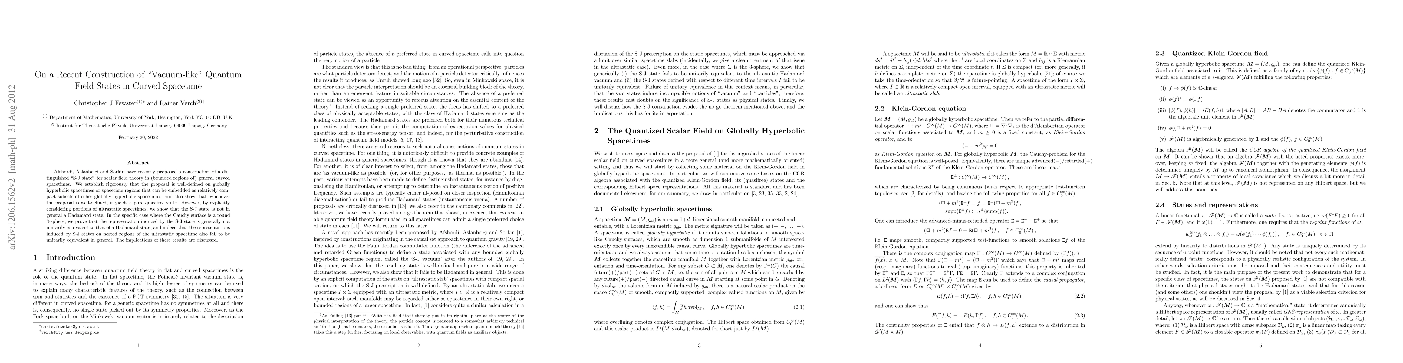 This paper rigorously confirms the well-definedness of a proposed "S-J state" in scalar field theory within certain curved spacetimes, showing it yields a pure quasifree state. However, it demonstrates that the S-J state is not generally a Hadamard state, especially in ultrastatic spacetimes, and is not unitarily equivalent to Hadamard states.