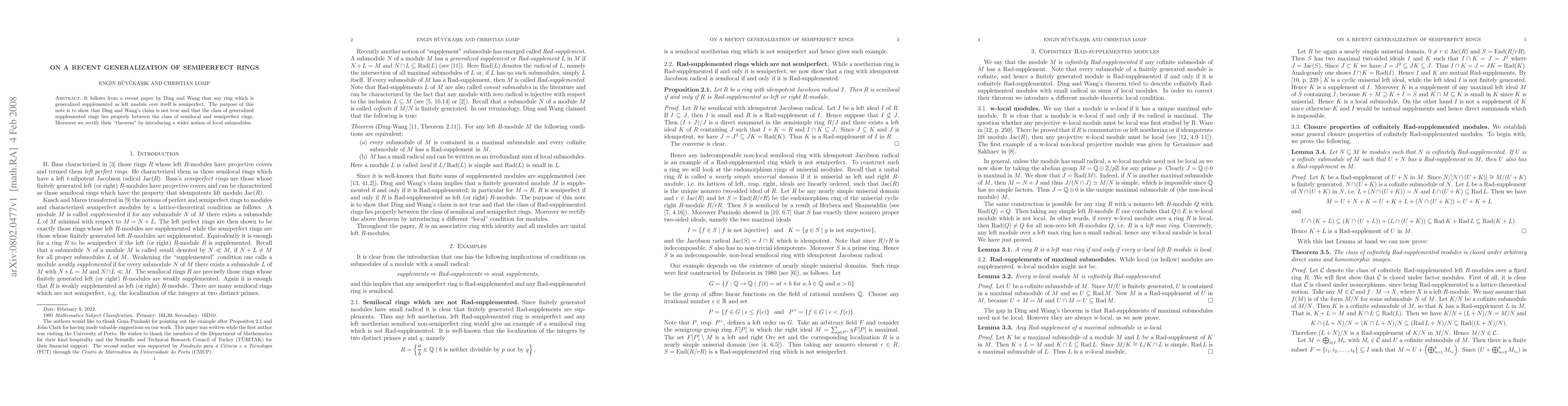 This paper refutes Ding and Wang's claim that generalized supplemented rings are semiperfect, demonstrating instead that they lie between semilocal and semiperfect rings. The author introduces a broader concept of local submodules to correct the original assertion.