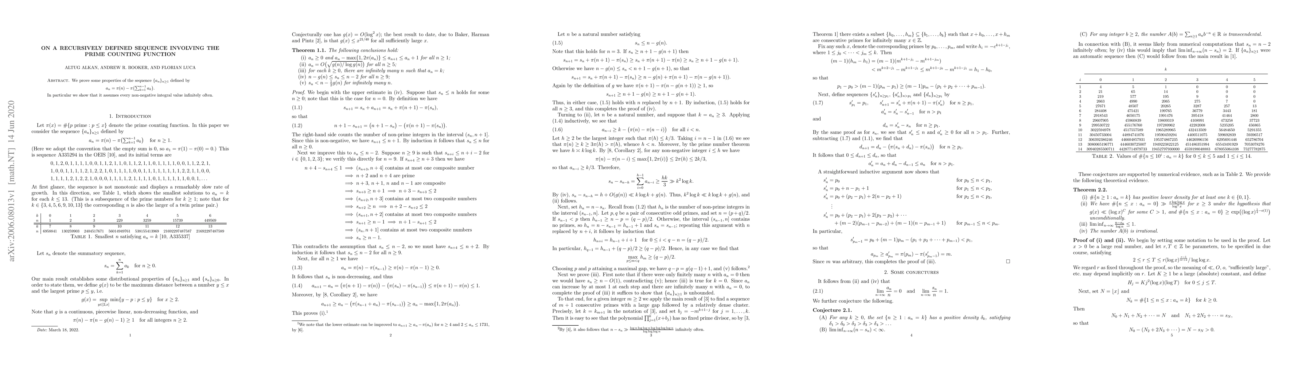 We prove some properties of the sequence $\{a_n\}_{n\ge1}$ defined by $a_n=\pi(n)-\pi\bigl(\textstyle\sum_{k=1}^{n-1}a_k\bigr).$
