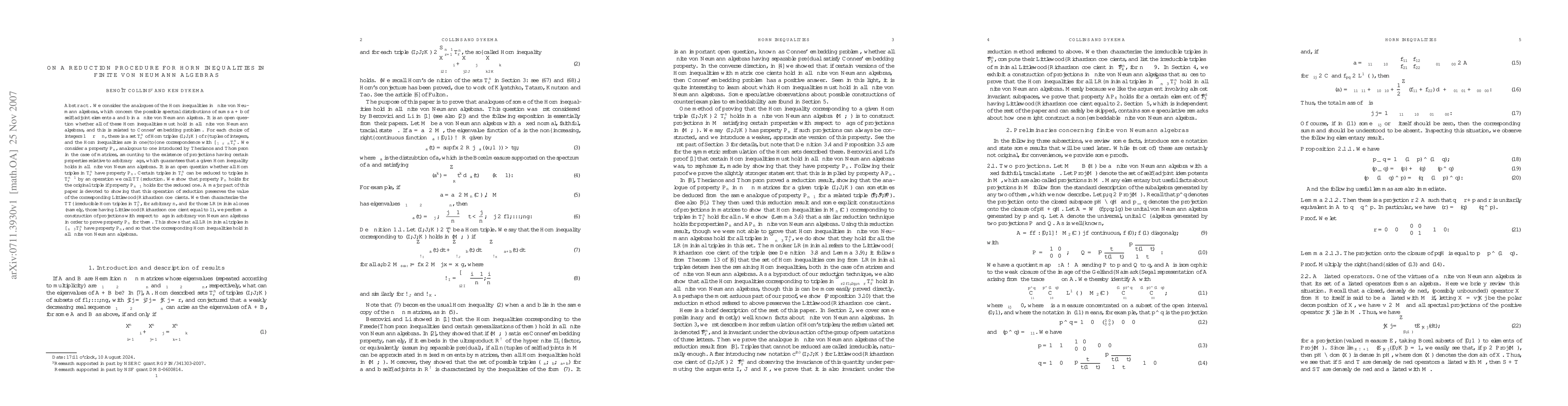 This paper explores the reduction of Horn inequalities in finite von Neumann algebras through a TT-reduction procedure, showing that if a reduced triple satisfies a certain property P, then the original triple does too. It proves that all LR-minimal triples in $T^n_3$ for $n \geq 3$ satisfy property P, thereby confirming the corresponding Horn inequalities in all finite von Neumann algebras.
