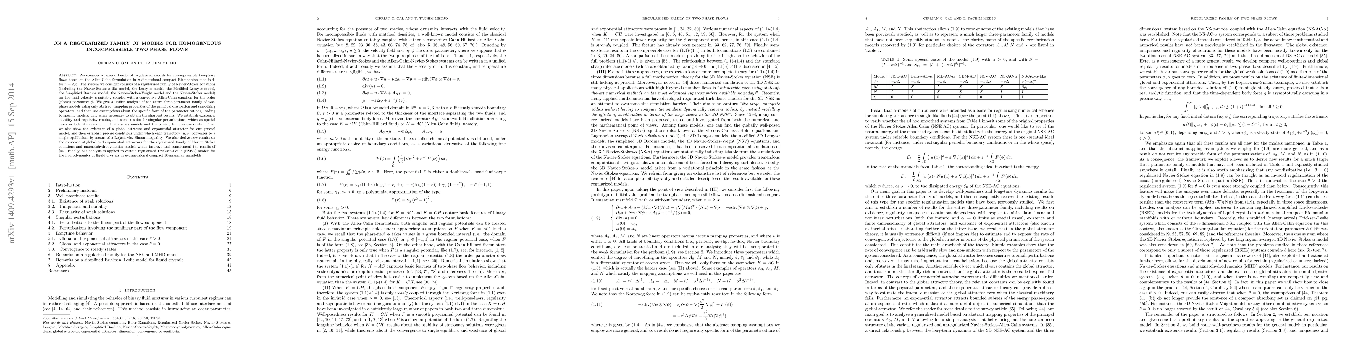 We consider a general family of regularized models for incompressible two-phase flows based on the Allen-Cahn formulation in n-dimensional compact Riemannian manifolds for n=2,3. The system we consider consists of a regularized family of Navier-Stokes equations (including the Navier-Stokes-{\alpha}-like model, the Leray-{\alpha} model, the Modified Leray-{\alpha} model, the Simplified Bardina model, the Navier-Stokes-Voight model and the Navier-Stokes model) for the fluid velocity suitably coupled with a convective Allen-Cahn equation for the (phase) order parameter. We give a unified analysis of the entire three-parameter family of two-phase models using only abstract mapping properties of the principal dissipation and smoothing operators, and then use assumptions about the specific form of the parametrizations, leading to specific models, only when necessary to obtain the sharpest results. We establish existence, stability and regularity results, and some results for singular perturbations, which as special cases include the inviscid limit of viscous models and the {\alpha}->0 limit in {\alpha}-models. Then, we also show the existence of a global attractor and exponential attractor for our general model, and then establish precise conditions under which each trajectory converges to a single equilibrium by means of a LS inequality. We also derive new results on the existence of global and exponential attractors for the regularized family of Navier-Stokes equations and magnetohydrodynamics models which improve and complement the results of Holst et. al. [J. Nonlinear Science 20, 2010, 523-567]. Finally, our analysis is applied to certain regularized Ericksen-Leslie (RSEL) models for the hydrodynamics of liquid crystals in n-dimensional compact Riemannian manifolds.