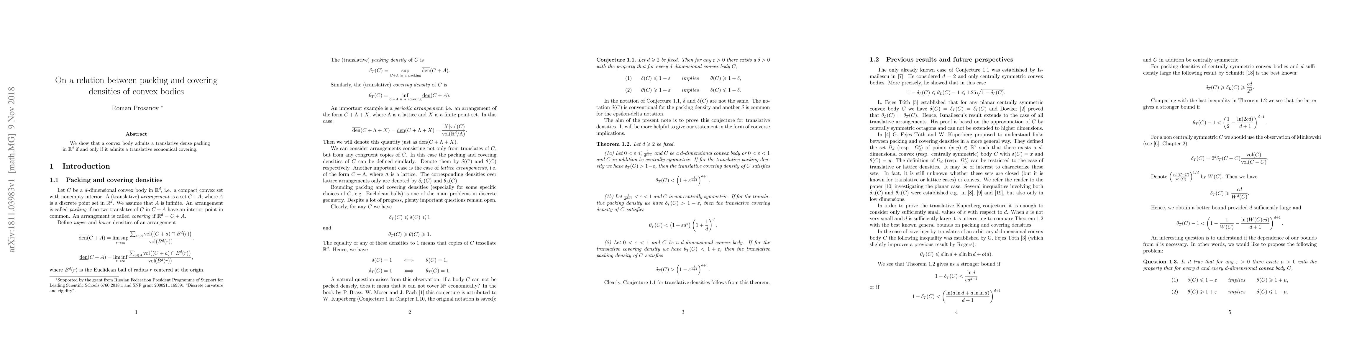 We show that a convex body admits a translative dense packing in $\mathbb{R}^d$ if and only if it admits a translative economical covering.