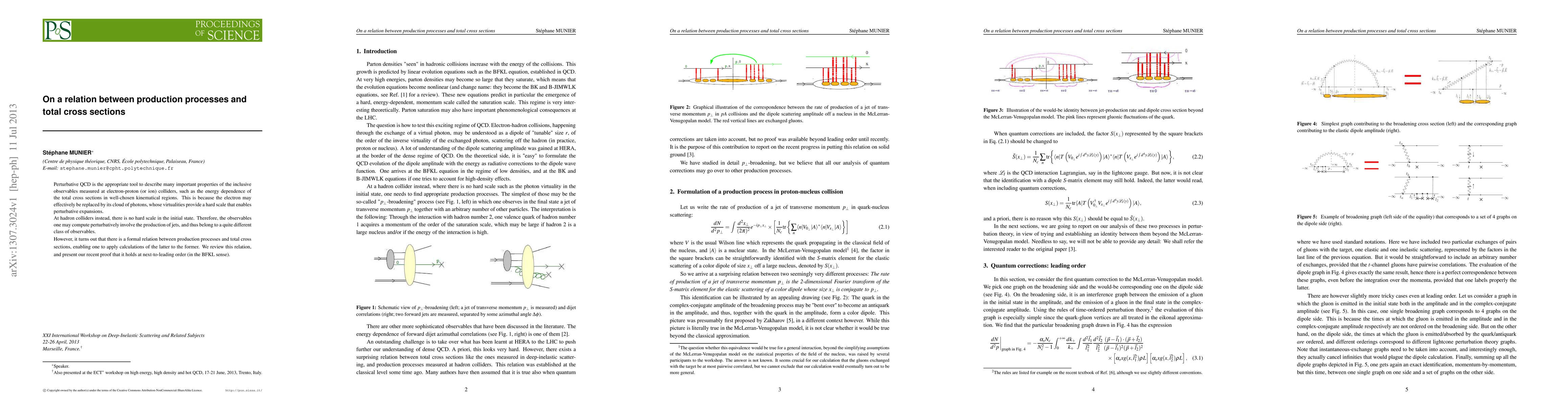 Perturbative QCD is the appropriate tool to describe many important properties of the inclusive observables measured at electron-proton (or ion) colliders, such as the energy dependence of the total cross sections in well-chosen kinematical regions. This is because the electron may effectively be replaced by its cloud of photons, whose virtualities provide a hard scale that enables perturbative expansions. At hadron colliders instead, there is no hard scale in the initial state. Therefore, the observables one may compute perturbatively involve the production of jets, and thus belong to a quite different class of observables. However, it turns out that there is a formal relation between production processes and total cross sections, enabling one to apply calculations of the latter to the former. We review this relation, and present our recent proof that it holds at next-to-leading order (in the BFKL sense).
