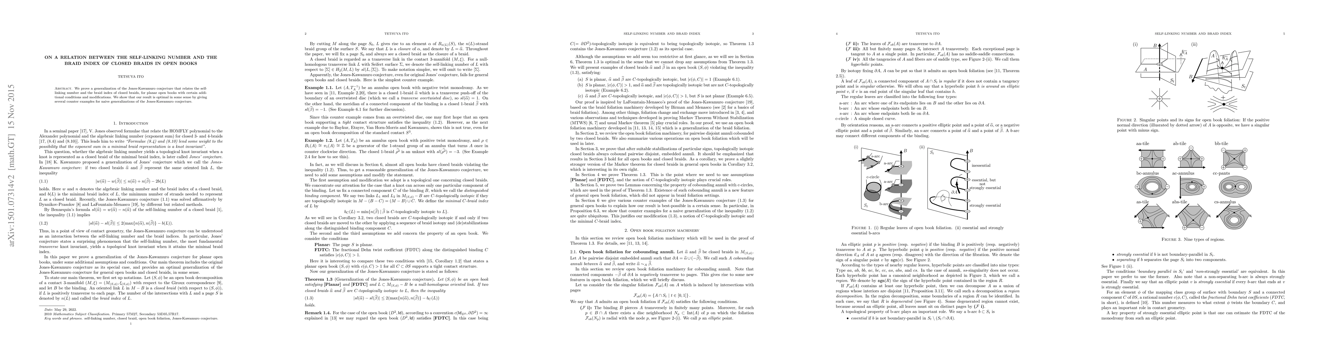 Researchers prove a generalization of the Jones-Kawamuro conjecture, relating the self-linking number and braid index of closed braids in open books, with several counterexamples for naive generalizations.