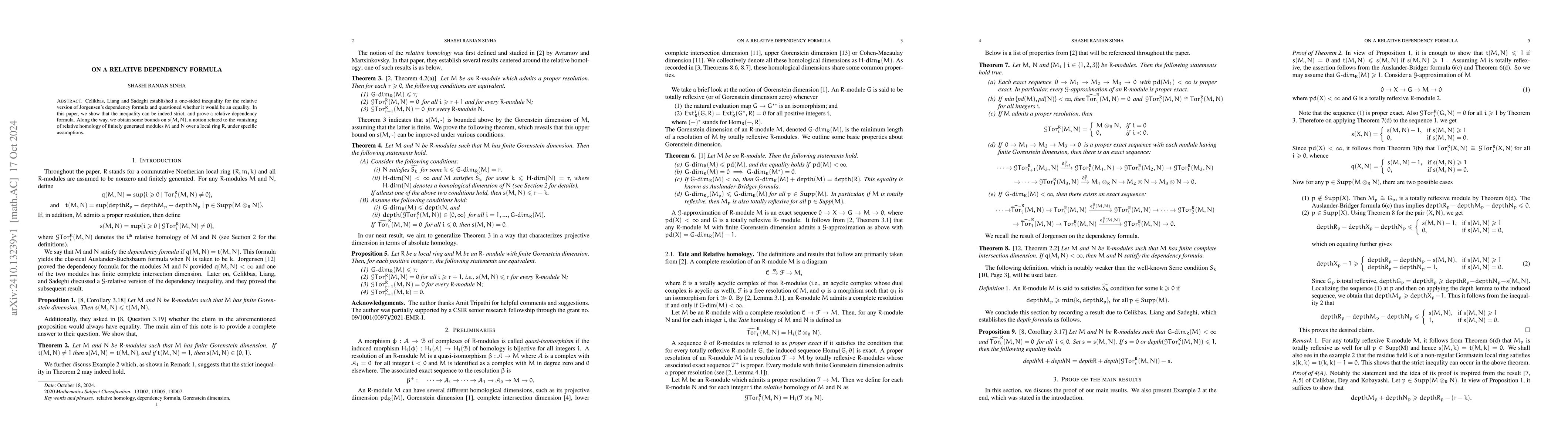 This paper proves that the previously established inequality in the relative version of Jorgensen's dependency formula is strict and introduces a new relative dependency formula. It also provides bounds for s(M,N) concerning the vanishing of relative homology in specific conditions.