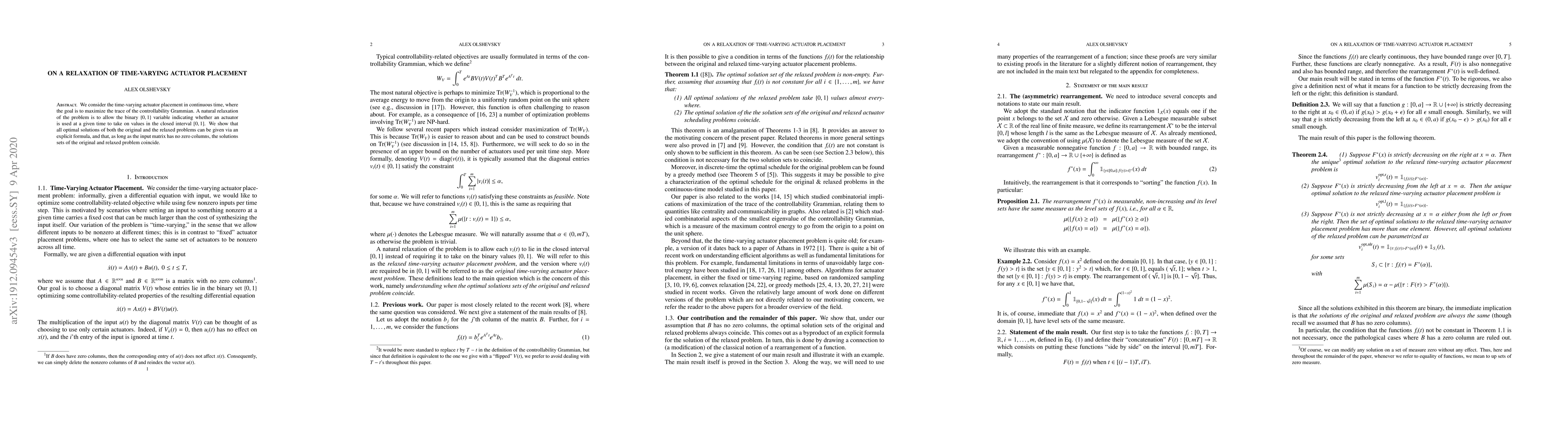 We consider the time-varying actuator placement in continuous time, where the goal is to maximize the trace of the controllability Grammian. A natural relaxation of the problem is to allow the binary $\{0,1\}$ variable indicating whether an actuator is used at a given time to take on values in the closed interval $[0,1]$. We show that all optimal solutions of both the original and the relaxed problems can be given via an explicit formula, and that, as long as the input matrix has no zero columns, the solutions sets of the original and relaxed problem coincide.