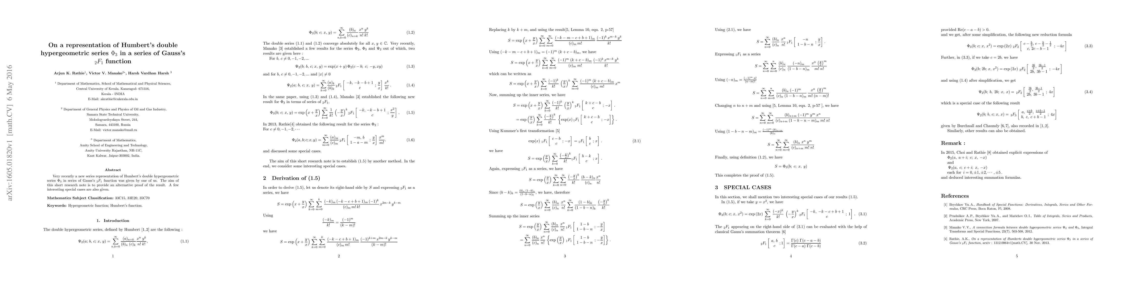 This paper presents an alternative proof for a recently discovered series representation of Humbert's double hypergeometric series $\Phi_3$ in terms of Gauss's $_2F_1$ function, along with some notable special cases.
