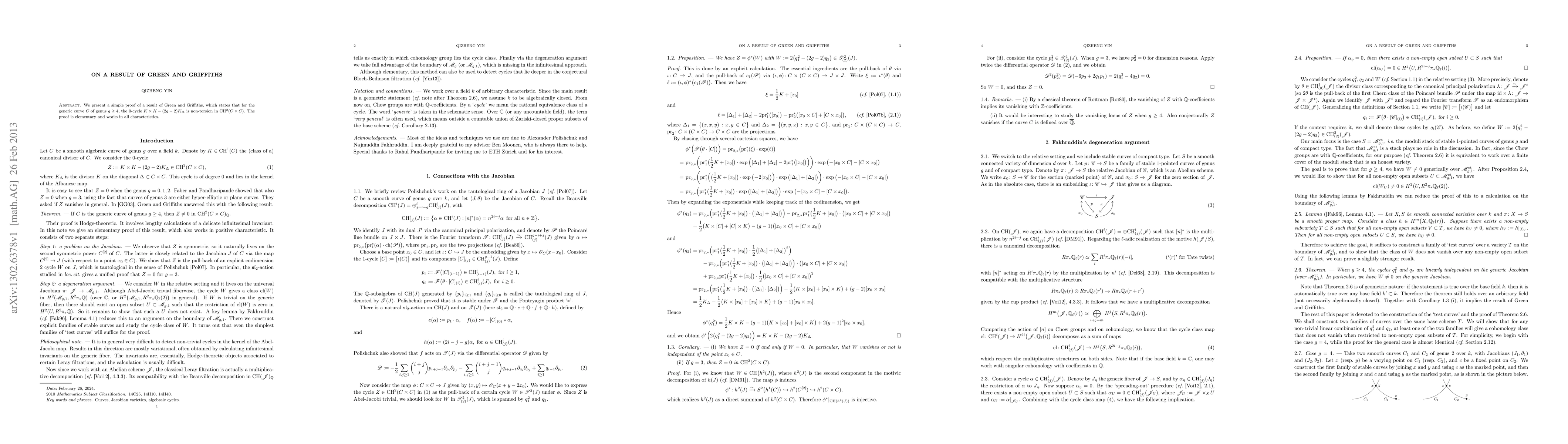We present a simple proof of a result of Green and Griffiths, which states that for the generic curve C of genus g >= 4, the 0-cycle K \times K - (2g - 2) K_\Delta is non-torsion in CH^2(C \times C). The proof is elementary and works in all characteristics.