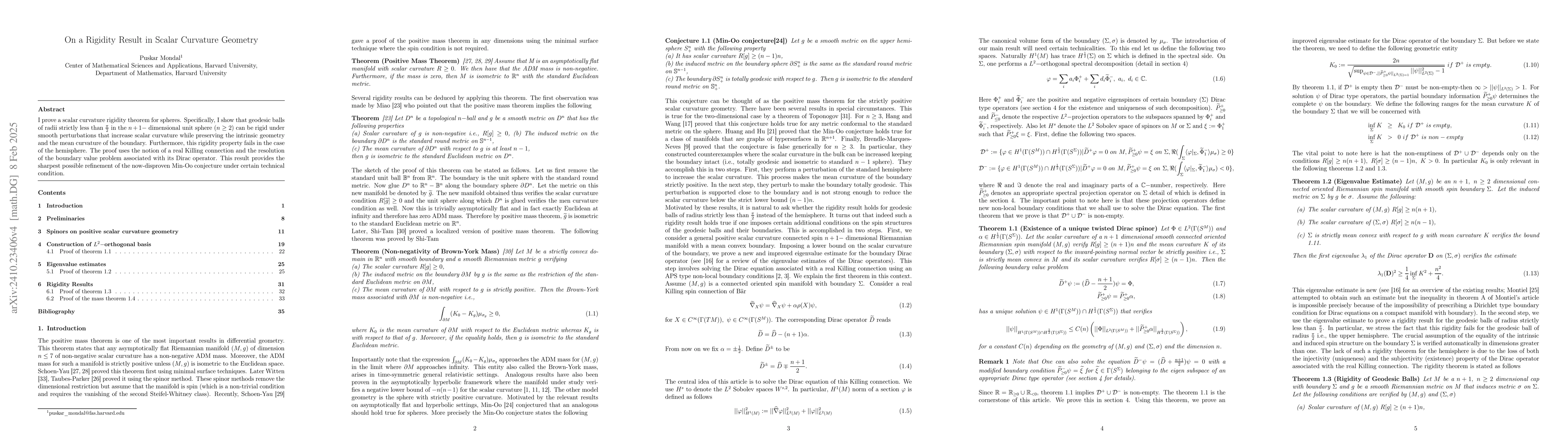This paper proves a rigidity theorem for geodesic balls in the unit sphere with radii less than $\frac{\pi}{2}$, showing they maintain their form under perturbations that increase scalar curvature, thus invalidating the Min-Oo conjecture. The proof employs real Killing connections and boundary value problems for the Dirac operator.