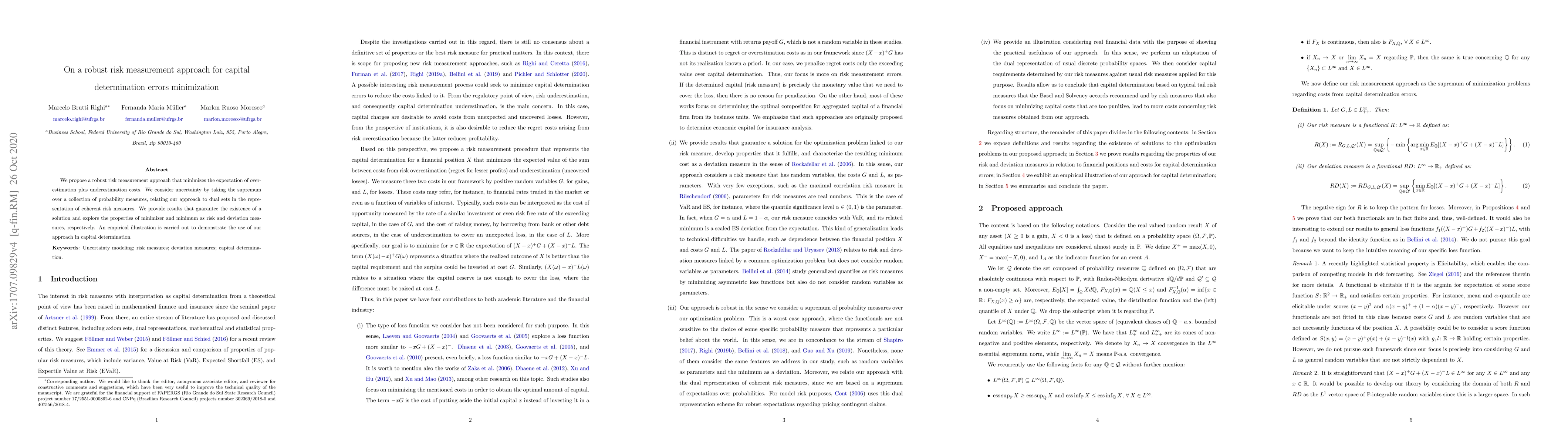 We propose a robust risk measurement approach that minimizes the expectation of overestimation plus underestimation costs. We consider uncertainty by taking the supremum over a collection of probability measures, relating our approach to dual sets in the representation of coherent risk measures. We provide results that guarantee the existence of a solution and explore the properties of minimizer and minimum as risk and deviation measures, respectively. An empirical illustration is carried out to demonstrate the use of our approach in capital determination.
