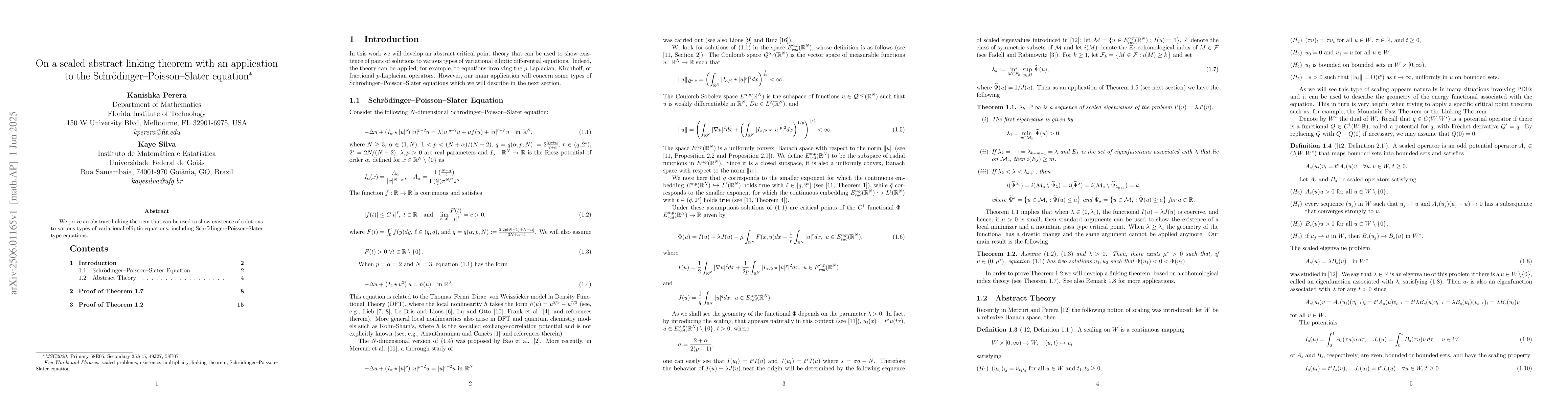 The research proves an abstract linking theorem applicable to variational elliptic equations, including Schrödinger--Poisson--Slater type equations.